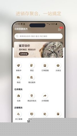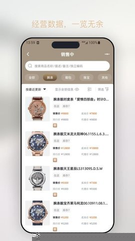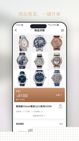 1. **全生命周期商品管理**:此功能直击奢侈品门店商品信息复杂、唯一性强的管理难点。用户可为每件商品建立详尽的数字档案,不仅包括品牌、型号、序列号等基础信息,更能记录购入成本、当前标价、品相等级、附件情况(如保卡、发票)及多角度高清图片。从入库、在库、销售到售后,商品状态实时更新,形成完整的生命周期记录,有效避免了因信息错漏导致的资产不清或纠纷,极大提升了库存管理的专业度和可靠性。