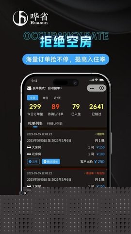 一、全渠道订单统一管理中心: 对于现代酒店而言,订单来源往往分散在各大OTA平台、自有官网、社交媒体乃至线下渠道。哗省订房商家版的核心功能之一就是聚合这些多元渠道的订单。商家无需分别登录各个平台后台,所有预订请求都会实时同步至软件的统一界面中。这从根本上解决了订单漏看、处理延迟的问题,确保了商家能够第一时间响应每一个潜在的入住机会,显著提升了订单转化率和客户满意度。