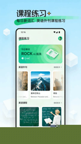 2. 情景融合式综合能力训练: 为了解决学用脱节、知识难以活学活用的问题,软件独创了情景融合训练模式,将词汇记忆、语法解析、听力输入和口语输出有机地整合到同一个模拟现实场景中,机场通关、商务谈判或餐厅点餐。用户在该场景下,需要先学习相关词汇和句型,听懂一段对话,进行角色扮演的口语练习。这种学-练-用一体化的设计,极大地强化了知识的综合运用与迁移能力。