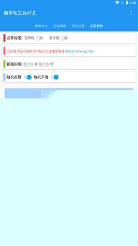 使用流程简述: 用户的使用旅程非常清晰。在软件的脚本中心选择目标平台对应的脚本。在任务配置页面设定基础参数,如总滑动次数。根据引导在系统设置中开启必要的无障碍服务和悬浮窗权限。进入行为微调设置,详细定义播放时长、间隔,并可选择开启随机点赞等高级模拟选项,配置完成后一键启动,即可享受自动化带来的便利。整个流程逻辑顺畅,引导明确,即便是新手也能轻松驾驭。