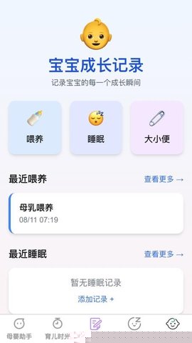 2. 人性化与包容性的交互设计: 软件界面简洁清新,操作逻辑直观流畅。特别考虑到家庭中不同成员的使用习惯,创新性地加入了语音快速录入功能(如下午三点喂奶120毫升),极大提升了记录效率。其极简的图标和清晰的引导,确保了即使是对智能设备不熟悉的祖辈,也能在经过简单学习后轻松上手,真正实现了全家人的无障碍使用。
