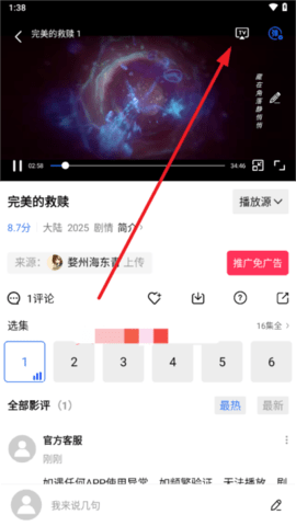 4、选择自己想看的视频进入,看到TV标志点击一下就可以投屏连接了。