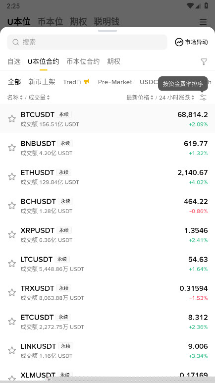 1、若要开启跟单交易功能,请依次进入「合约」→「跟单」页面,即可查看各类交易员列表及其交易表现数据,例如收益率、盈亏情况、夏普比率等指标。