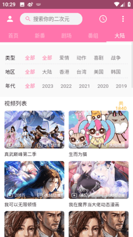 3、这款应用还提供了分类功能,用户可以根据动画的类型、地区、风格等进行直接搜索,方便他们找到自己喜欢的动画。
