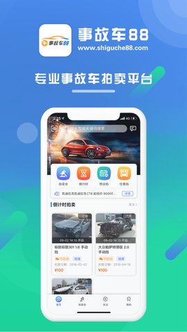 1、事故车88网App不仅是一个车辆交易平台,还是一个专业的事故车拍卖平台。
