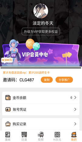 2、另外如果用户想要兑换vip账号,可以进入漫画界面,点击vip充值,然后点击下方的兑换VIP,复制粘贴兑换码进行兑换。