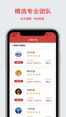 1、上海沪牌代拍App汇集了众多优秀的代拍团队,这些团队经过严选,拥有丰富的经验和专业的技术。