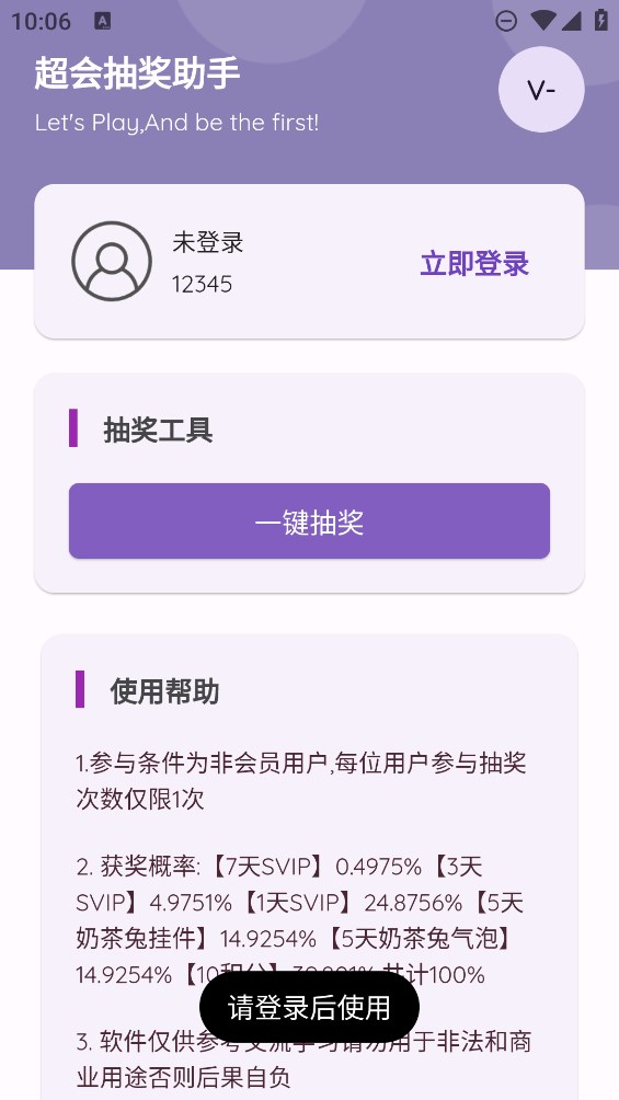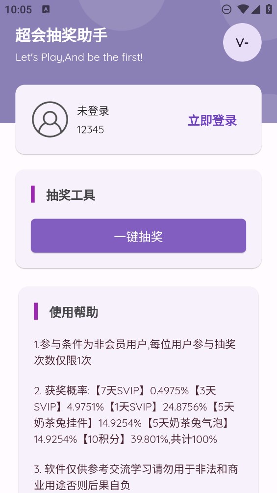 1、超会抽奖助手官方版是专为喜欢抽奖的小伙伴准备的福利抽奖APP。