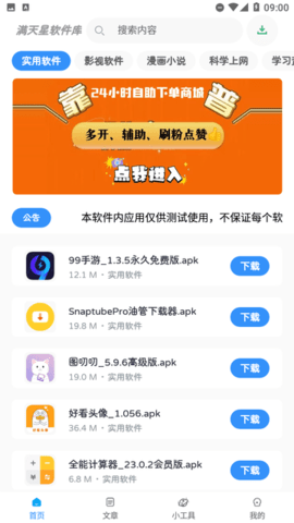 1、满天星软件库App是专为安卓用户打造的一个应用分享社区,它集合了应用、游戏、工具和线报等多种资源。