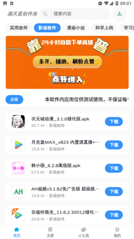 3、这些软件库中的应用种类非常丰富,涵盖了各种分类,比如社交、娱乐、工具、视频等等。