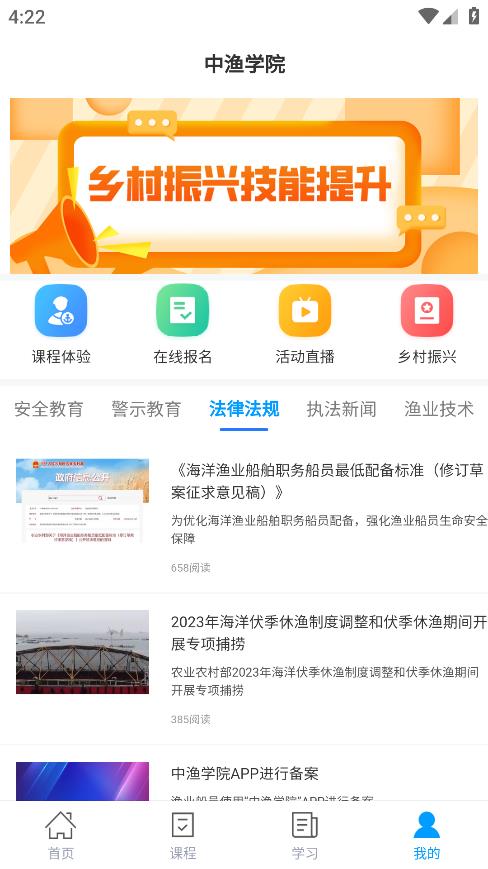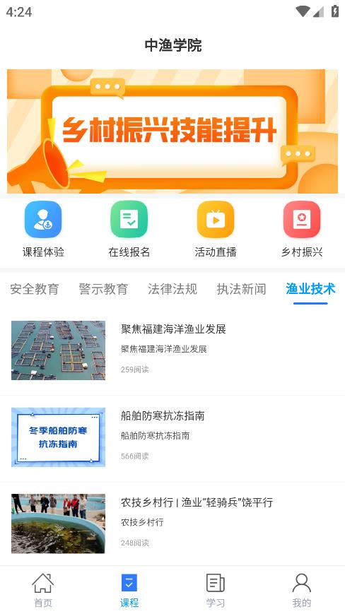 4、如果你是渔业从业者,赶紧下载中渔学院安卓APP,珍惜学习机会,提升自己的专业水平。