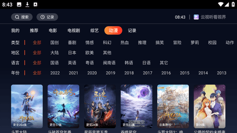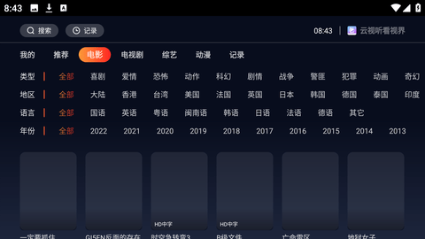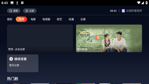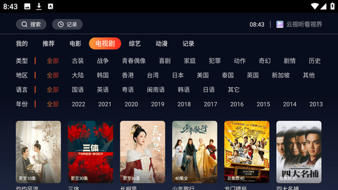 2、云视听看视界TV版是一款非常不错的优质推荐,它提供了电影、电视剧、综艺、动漫、记录等多种分类的影视作品。