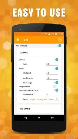 4、你还可以自定义动物和怪物的技能和行为,如传送、装载和库存等。