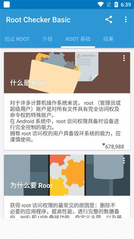 3、root检查工具App(RootChecker)是一款专为安卓手机打造的root权限检查工具,它可以帮助用户查看你的root是否成功,并帮助你查询设备是否具有root权限。
