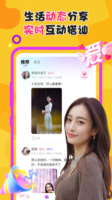 1、通过视频、图片、文字动态传递浓浓的爱意,只要用户们有相同的兴趣爱好,就可以相互语音连线微聊,美丽约会。