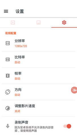 2、此外你还可以设置录制视频的分辨率、帧率、比特率和方向速度等参数,还支持录制声音,让你在录制屏幕的同时轻松讲解,省去后期制作的麻烦。