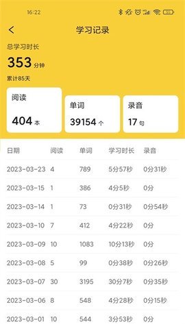 3、它不仅提供了丰富的绘本故事资源,还汇集了用户学习明细,方便用户进行学习情况回顾。