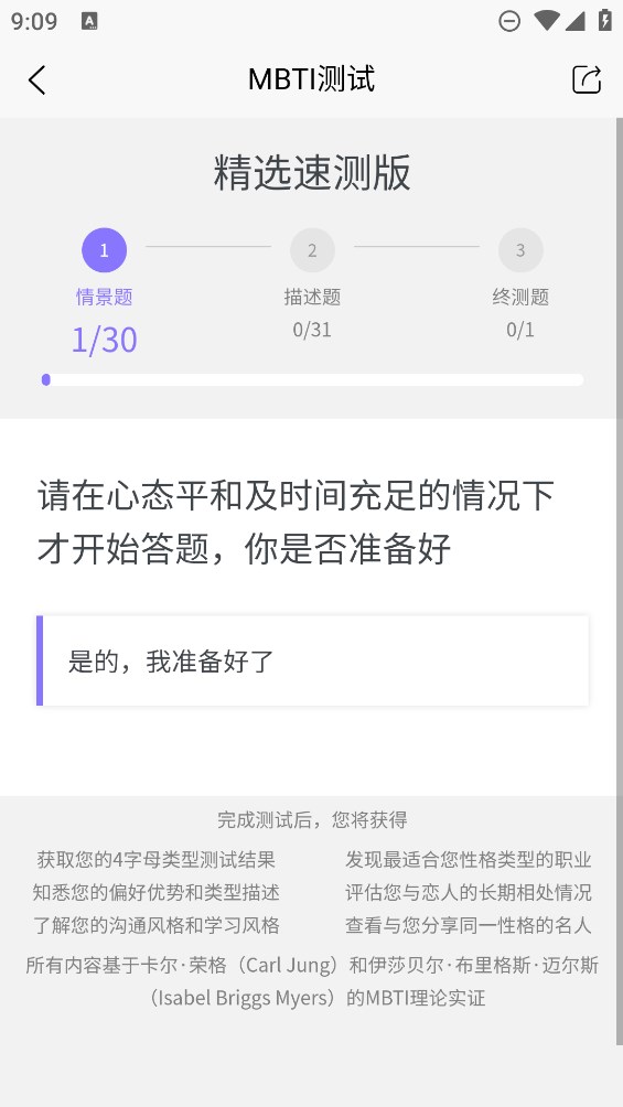 1、MBTI职业性格测试app官方版是一款方便、免费且准确的应用。