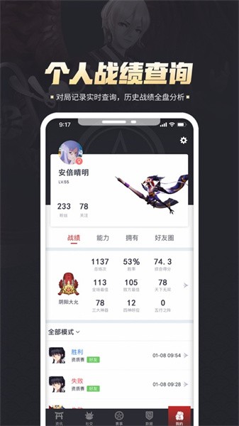 3、同时你也可以完整同步游戏的式神装备图鉴和战绩查询等数据信息,助你更快上手,快速决战平安京。