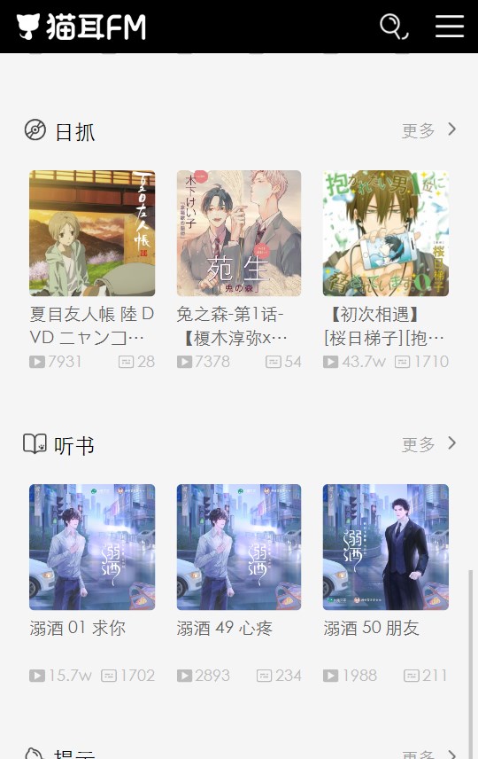 2、现在,它也被称为M站或猫耳FM,这个新名字更加贴切地为用户筛选出不容错过的精品内容。