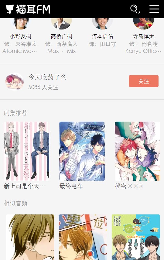 4、音乐监督李大白为猫耳FM提供了优质的音乐资源,用户可以在这里找到他们喜欢的剧集和漫画,并在关灯上床时慢慢聆听。