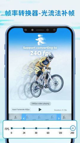 2、此外TimeCut还内置了帧率一键转换器,最大可以将帧率转换至240帧。