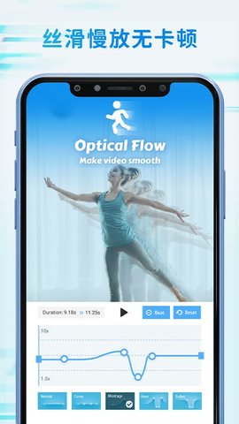 4、它采用了先进的光流图像处理算法,能够改变视频的帧速率或速度,帮助你制作出酷炫的运动模糊效果和高质量的动态效果。