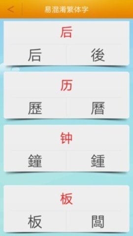 1、在使用这个软件的过程中,我发现可以多关注自己不认识的繁体字或者经常写错的繁体字。