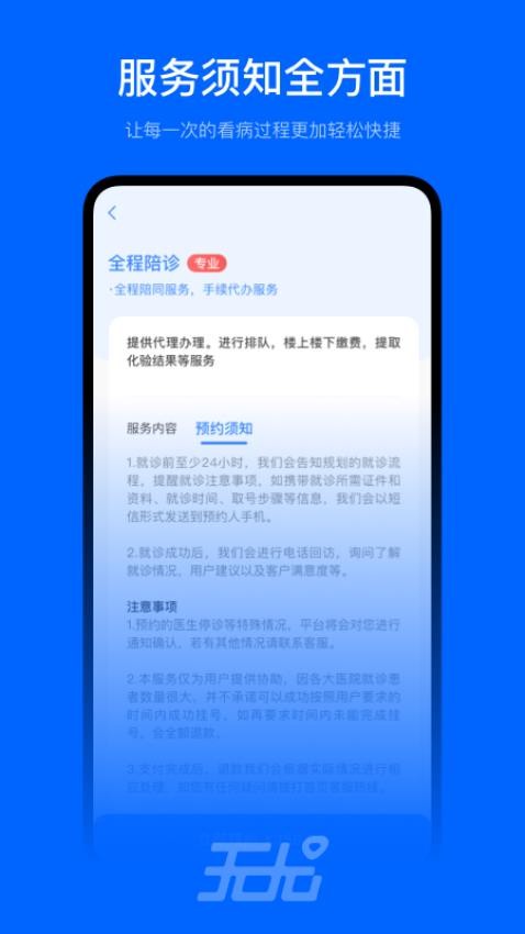 3、所有与陪诊服务相关的注意事项都会在软件中列出,供用户浏览。