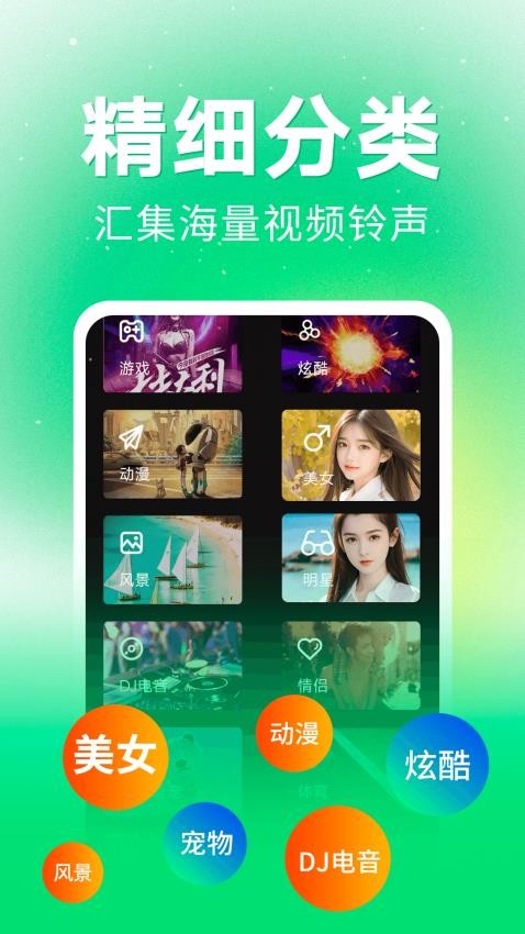 4、此外来电视频铃声免费版还提供了精细分类管理功能,用户可以根据自己的喜好,选择明星类型等特定分类进行浏览,总有一款符合用户口味。