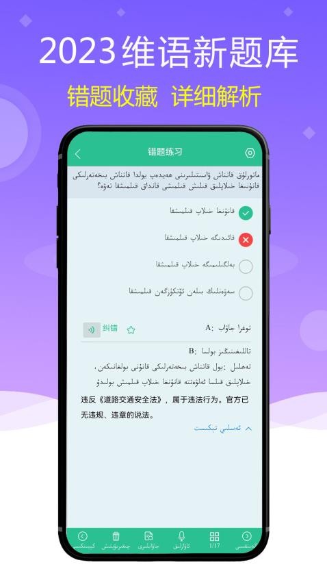 1、维语驾考软件提供大量优质的题型,包括历年真题随时在线训练、全真模拟考试环境、维语新题库以及专业视频讲解题型等。